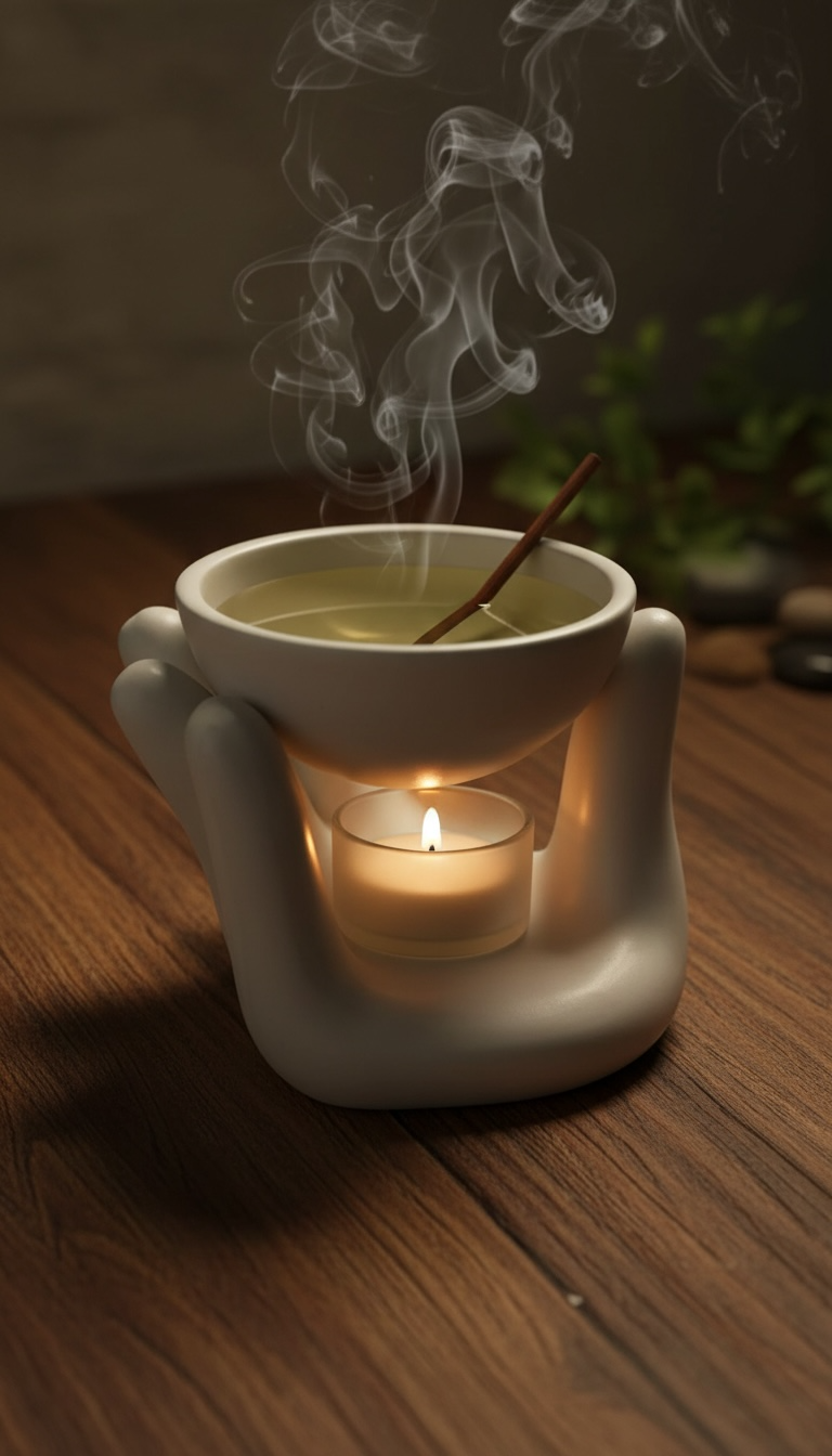 Brûleur d’huile décoratif en forme de main, chic et moderne, idéal pour diffuser vos huiles parfumées diluées et apporter une touche originale à votre intérieur.