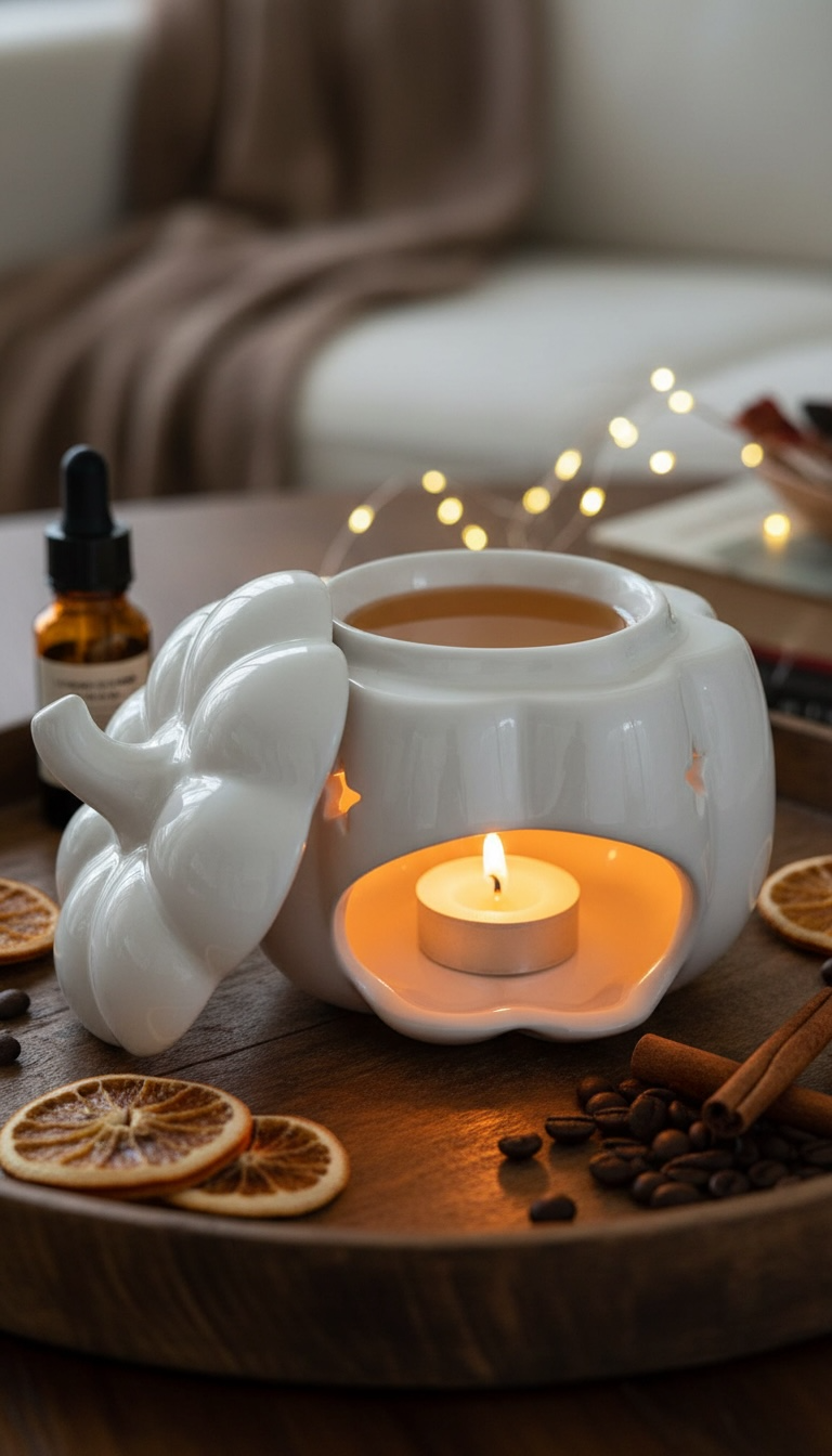 Brûleur d’huile citrouille blanche d’automne et d’Halloween