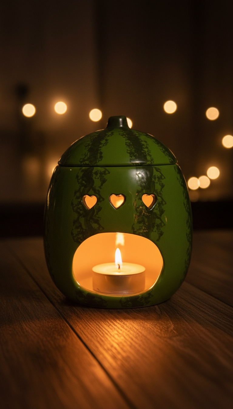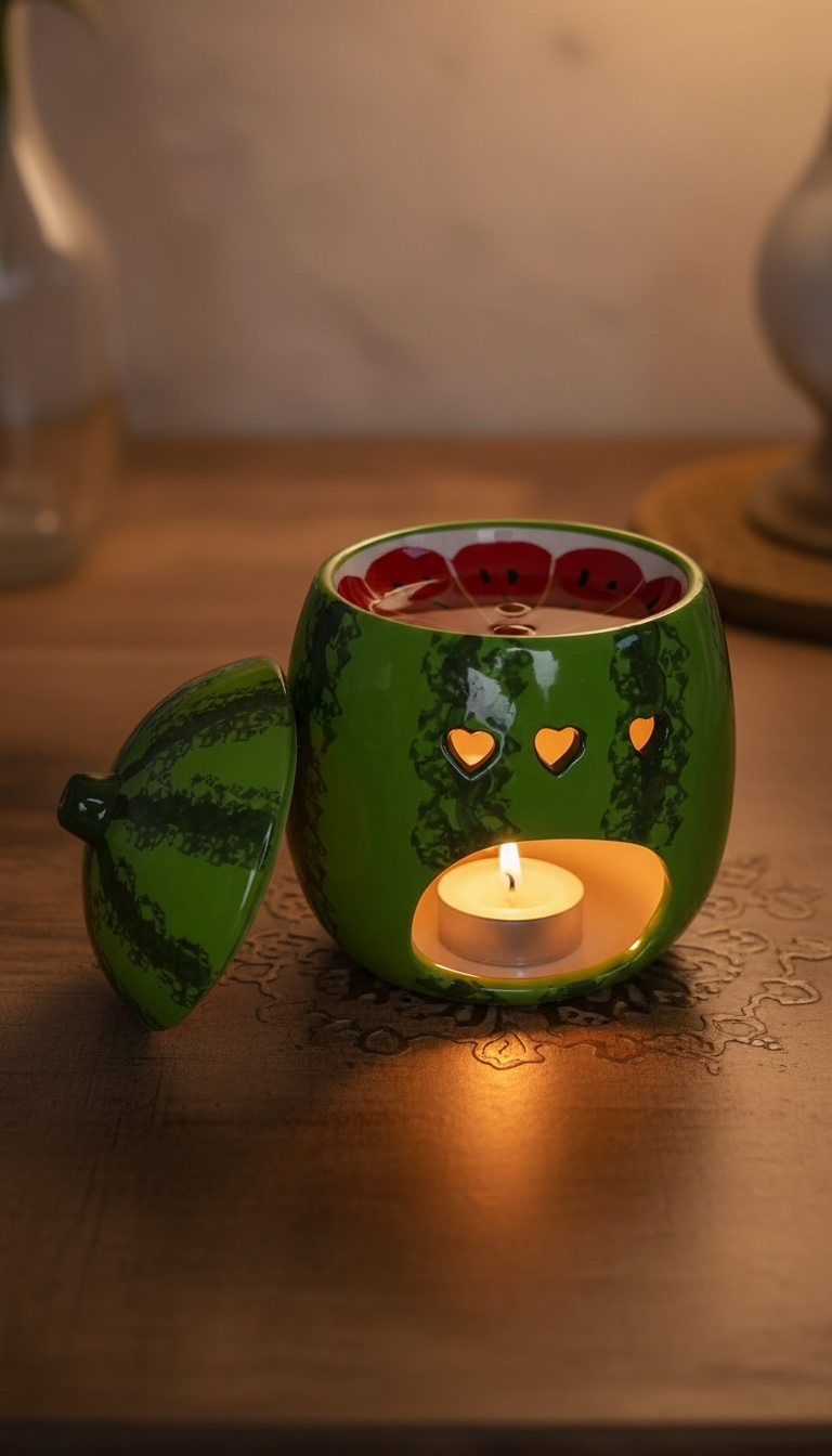 Brûleur d’huile et chauffe-cire en forme de pastèque juteuse, idéal pour diffuser vos huiles parfumées diluées tout en ajoutant une touche ludique à votre intérieur. Retirer le couvercle pendant l’utilisation.