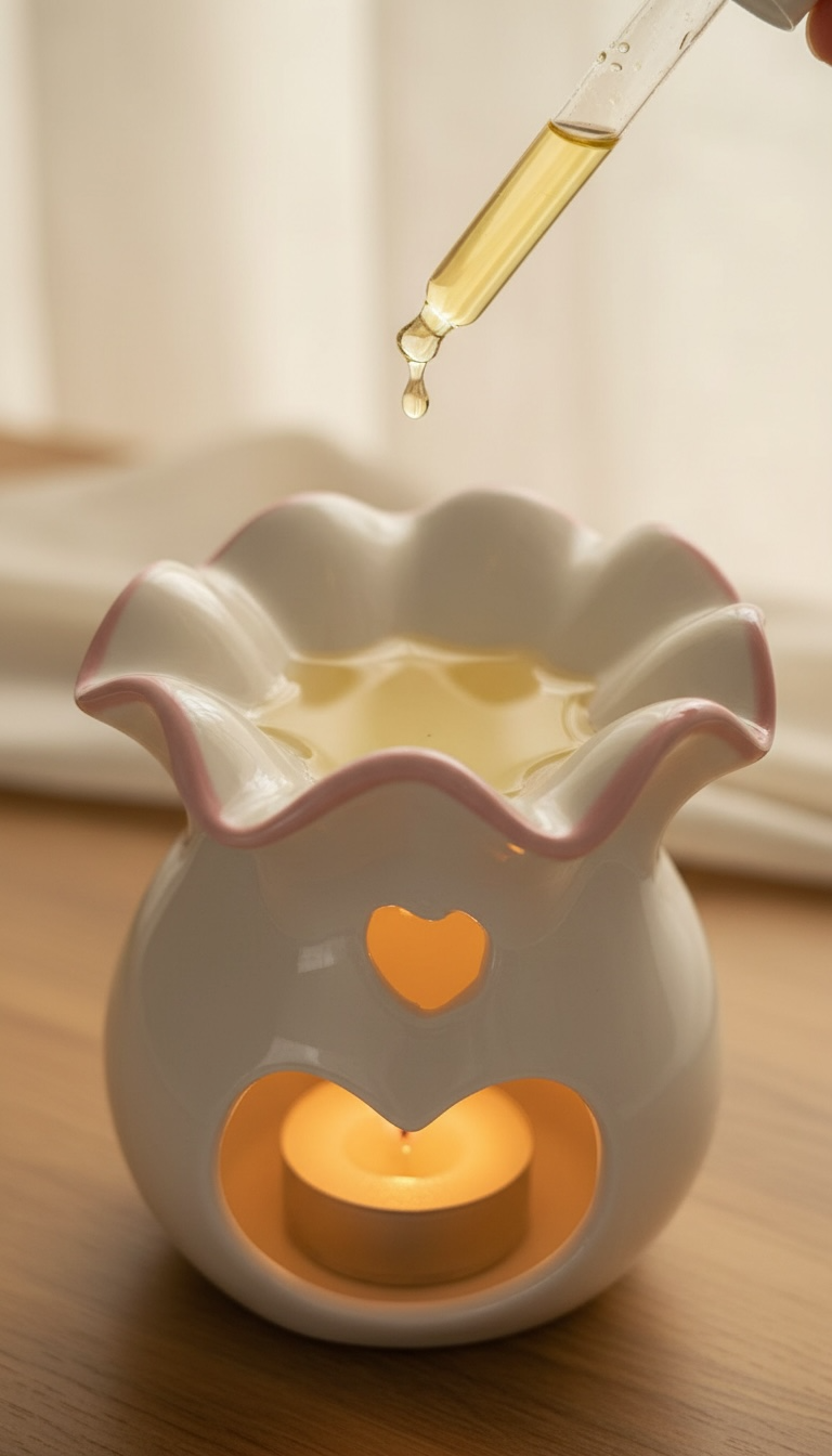 Brûleur d’huile décoratif avec nœud rose délicat, parfait pour la Saint-Valentin ou des moments parfumés au quotidien. Utiliser avec huile diluée et bougie chauffe-plat, en retirant toujours le couvercle pendant l’utilisation.